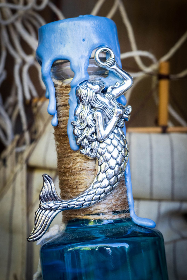 Produit artisanal, peut contenir des variantes de couleur ( légèrement plus clair ou plus foncé). Chaque potion est un produit unique de par la disposition du filet et des coulures de cire.